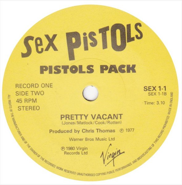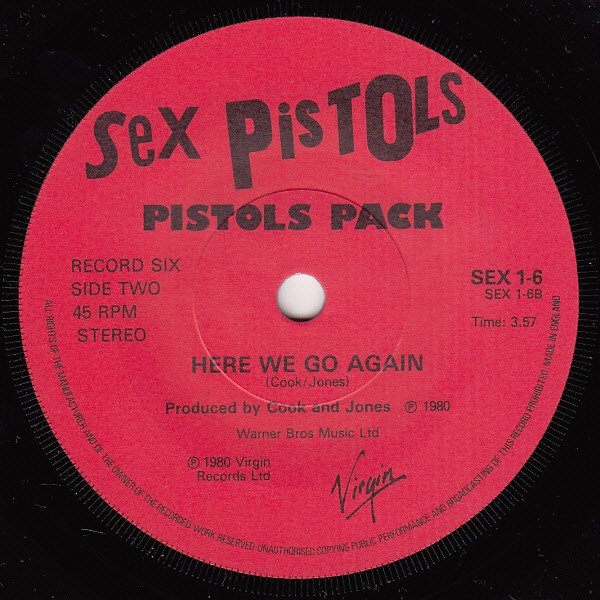 Issued in a plastic "accordion" wallet. [Labels:] ℗ 1980 Virgin Records Ltd Made in England [Sides A, B, C & J:] ℗ 1977 Warner Bros Music Ltd [Side D:] ℗ 1978 Publisher: For UK © 1970 Shapiro Bernstein Music Co Ltd/S.D.R.M. [Sides E & G:] ℗ 1979 Burlington Music Ltd [Sides F & H:] ℗ 1979 Warner Bros Music Ltd [Side I:] ℗ 1980 Screen Gems/EMI Ltd Recorded: 1976 [Sides K & L:] ℗ 1980 Warner Bros Music Ltd Producer credits for track J reads "Chris Thomas or Bill Price" on the label. Additional runout information: - Runouts are etched - Sides D and J: 'A' scratched out - Side L: 'BC' seems like it's etched over '6'