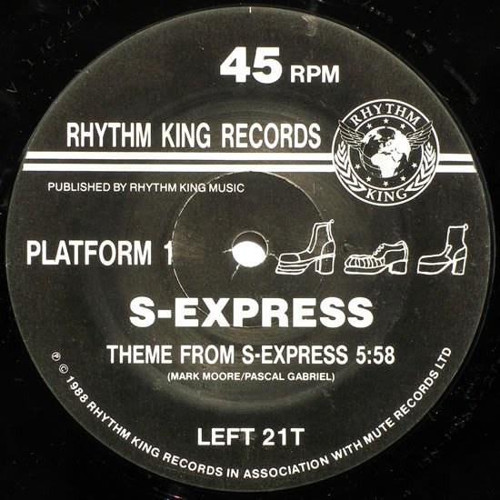 Arpeggio bassline and Synthesizers & Horns samples taken from [m153908]. "I Got The Hots For You" vocal sample taken from [r583465]. "Drop That Ghetto Blaster!" vocal sample taken from [r85884]. "Horn Break" taken from [r1388009]. "Uno, dos, ¡uno dos tres cuatro!" sample taken from [m56440]. Original A-side etching: "PLATERS DO IT EVERYDAY + HOUR" Etched out and replaced by: "WHAT HAPPENS ON THE S EX-PRESS?" Variant 3 and 4 are pressed with stampers originating from different master plates. Sleeve assembled at Bite It! Track B2 is not mentioned on the outer sleeve. ℗ © 1988 Rhythm King Records in association with Mute Records Ltd.