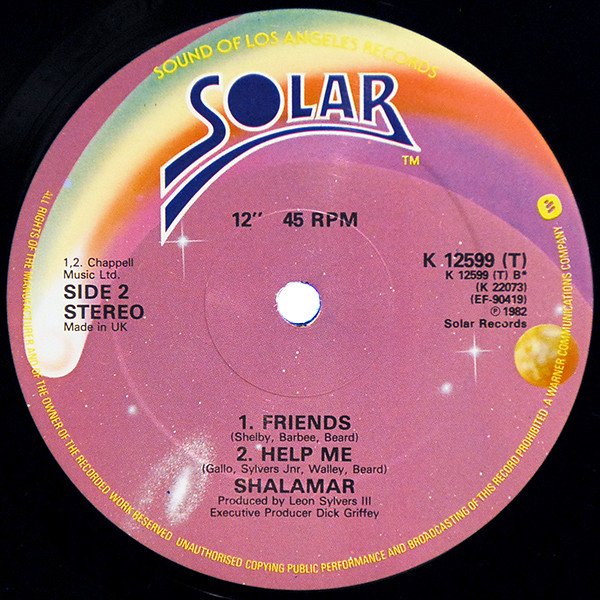 Produced by Leon Sylvers III. A-side: From the album "Friends" K 52345. No durations on this issue Also issued in a WEA company sleeve. See [r=10950793].