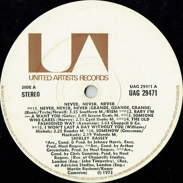- Record Company – Liberty/United Artists Records Ltd.