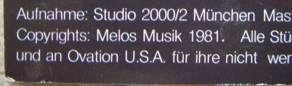 Recorded at Studio 2000/2 Munich mastering: Barbarossa Studio Munich, Ing. Gerd Markert.