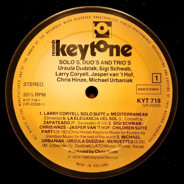℗ 1974/1982 Keytone Records © 1982 Keytone Records Keytone Records - A division of Keytone Productions BV.Made in Holland. Printed in The Netherlands.Recorded at the Dureco and 2000 & 2 Studios and the Soundpush and Electric Lady Studios. Mastered at CBS Studios Holland.