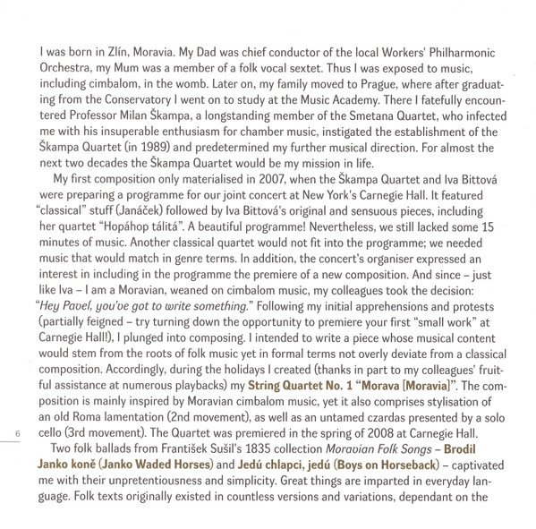 | Morava [String Quartet No. 1 / Smyčcový Kvartet Č. 1 (2008)] | 16:44 | |