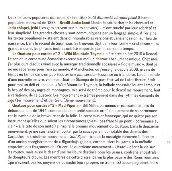 | Wild Mountain Thyme [String Quartet No. 2 / Smyčcový Kvartet Č. 2 (2009)] | 16:49 | |