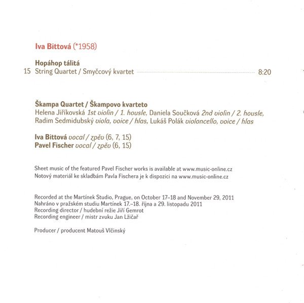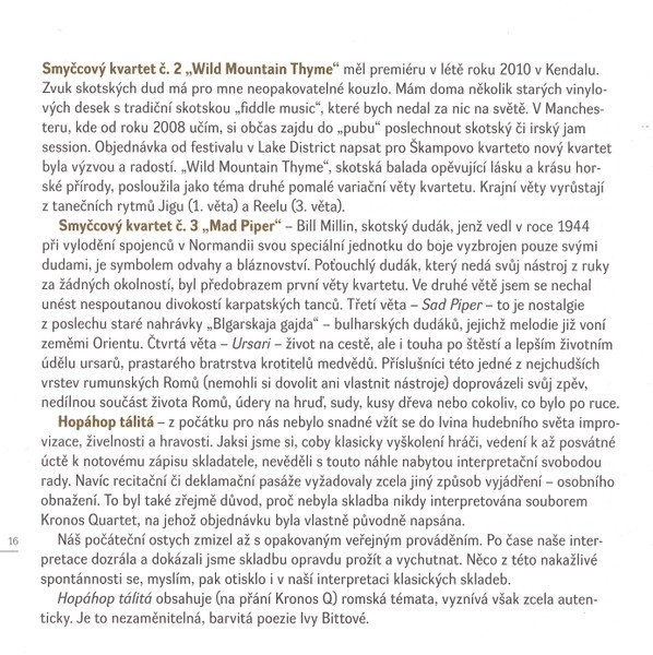 | 15 | Hopáhop Tálitá [String Quartet / Smyčcový Kvartet] | 8:20 |