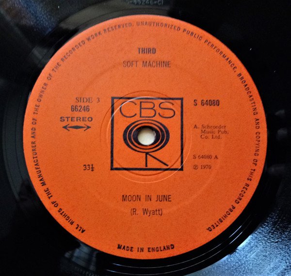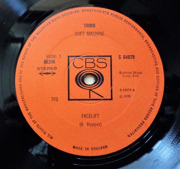 A: Robbins Music Corp. Ltd. B to D: A. Schroeder Music Pub. Co. Ltd. UK 1st issue variant, with 1970 type inner sleeves. Gatefold cover printed and made by the E.J. Day Group. "Facelift" was recorded live at Fairfield Hall Croydon January 4th 1970 and at Mothers Club, Birmingham January 11th 1970. ℗ 1970 Made in England Track B.b is only mentioned inside the gatefold, neither on the tracklisting on the back cover nor on the label. 'O.40' is stated next to the composer credit. Side C: 'The Moon in June' on inner cover index, but 'Moon in June' on label. Same difference on all orange labels UK albums.