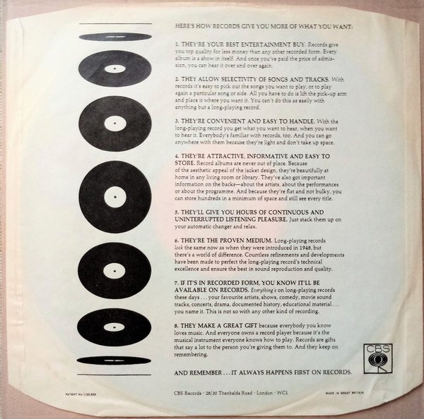 - Pressed By – CBS Pressing Plant, Aston Clinton