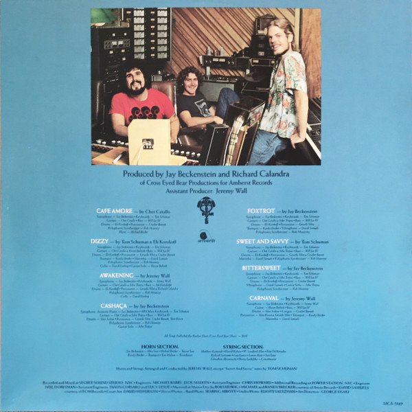 Horns Section: [a261358] - Alto Sax ● [a135847] - Tenor Sax ● [a253774] - Trumpet ● [a280703] - Trombone String Section: [a200782] ● [a200786] ● [a334313] ● [a354638] ● [a315732] ● [a292804] ● [a270854] ● [a292826] ● [a292827] ● [a135849] - Concertmaster Michael and Randy Brecker courtesy [l362] Records. Davis Samuels courtesy of [l6785]. Printed inner sleeve. Runouts are hand-etched except for MASTERDISK and 回-G-回 (denoting a [l314985] pressing) which are stamped.