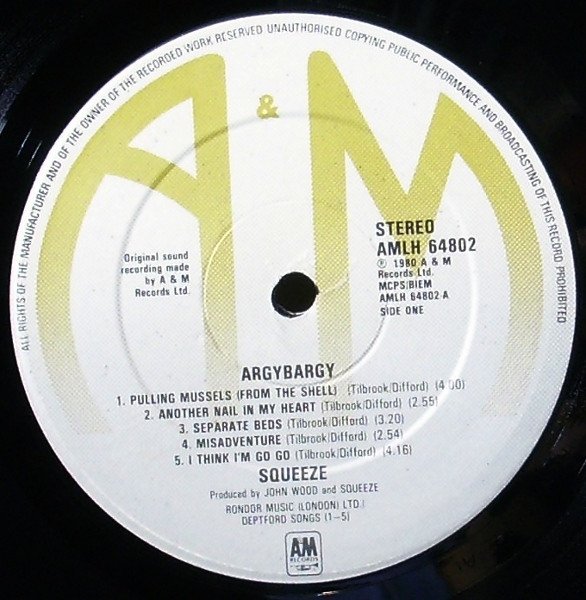 Printed innersleeveBack cover : Recorded at Chelsea Olympic, London Back cover [Photo] : Self PortraitsSpine : ℗ 1980 A&M Records Ltd. © 1980 A&M Records Ltd. Printed in England by Robor Ltd.Labels : Original sound recording made by A & M Records Ltd. Rondor Music (London) Ltd./ Deptford Songs (A1 to B6)Runouts: All is etched except the last numerals and letters (15/10/C) which are stamped