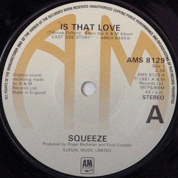 Solid centre version mastering variant. Issued in picture sleeve. On back cover: ℗ 1981 A&M Records Ltd. © 1981 A&M Records Ltd. On labels: ℗ 1981 A & M Records Ltd. Original sound recording made by A & M Records Ltd. Made in England A: From The A & M Album "[m=118625]" — AMLH 64854 Illegal Music Limited B: Copyright Control