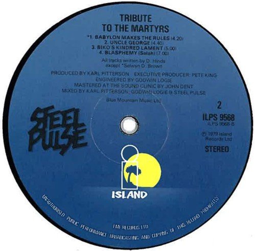 Issued on blue 'sunset/moon' design Island labels crediting EMI Records Ltd. below the logo at 6 o'clock. Cardboard printed in color inner sleeve with lyrics and special thanks.