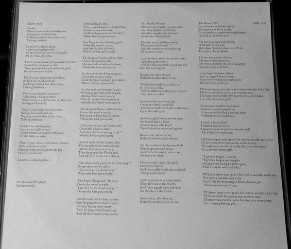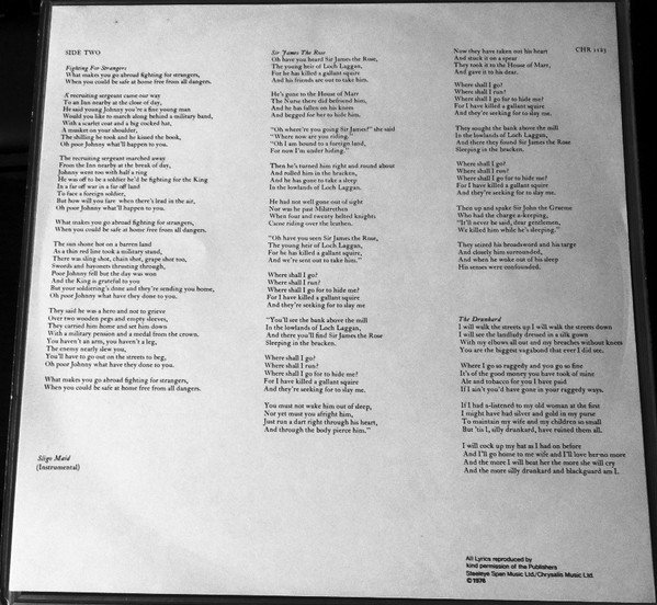 Back cover: Recorded at Frans Peters Studios, Hilversum, Holland. Spine: Printed in U.K. Labels: ℗ 1976 Chrysalis Records Ltd. Comes with a lyric insert and printed innersleeve (Steeleye Span Collection)