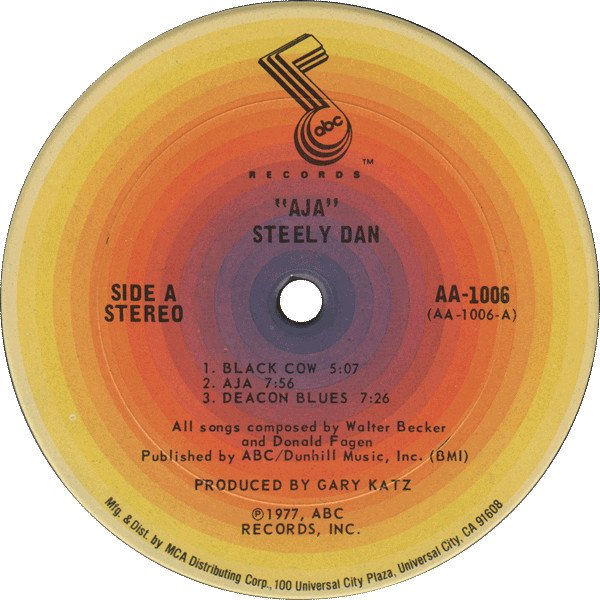 This is a variant of the ABC yellow target design. It has ABC written inside an eighth note and says "Mfg & Dist. by MCA Distributing Corp., 100 Universal City Plaza...." Gatefold cover similar to original, LP housed in lyric sleeve.