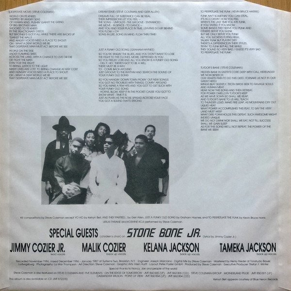 Including printed inner sleeve with lyrics.Recorded November 1986 Mixed December 1986 - January 1987 at Systems Two, Brooklyn, N.Y. Mastered at Tonstudio Bauer, Ludwigsburg©&℗ 1987 JMT Productions Made in West Germany Printed in West Germany
