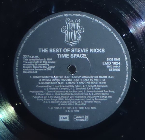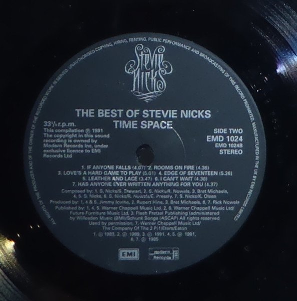 This compilation ℗1991. The copyright in this sound recording is held by Modern Records Inc, under exclusive licence to EMI Records Ltd. Manufactured in the UK by EMI Records Ltd. Issued with custom inner sleeve with lyrics. A1, B3 are new tracks A2, B4, B5 from "Bella Donna" A3, B2 from "The Other Side Of The Mirror" A4, B6, B6 from "Rock A Little" A5, A6, B1 from "The Wild Heart"