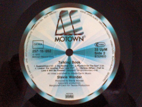 Gatefold Vertrieb BELLAPHON ℗ Motown Record Corp. Manufactured and distributed by Bellaphon Germany Release date assumed from the label discography Belongs to a series of Stevie Wonder reissues by Bellaphon