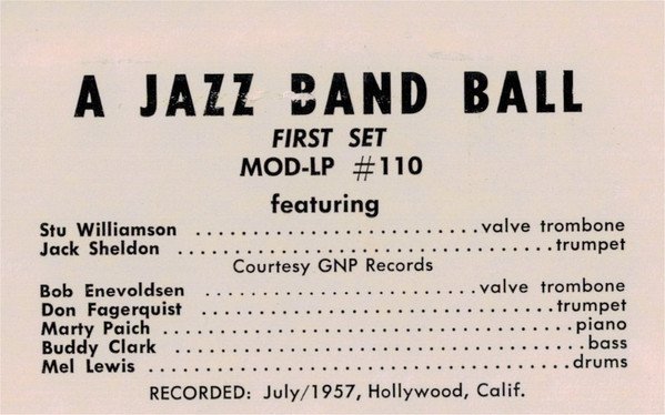 Recorded July 1957, Hollywood, California. (P) & (C) V.S.O.P. Records 1985 Current Cat# VSOP 23 on spine and Centerlabel Original Cat# (Legacy) Mod LP # 110 / Mod -LP 110 on front- & rearcover and Centerlabel & spine frontcover does not list an artist but rear cover only (see scan pl.)