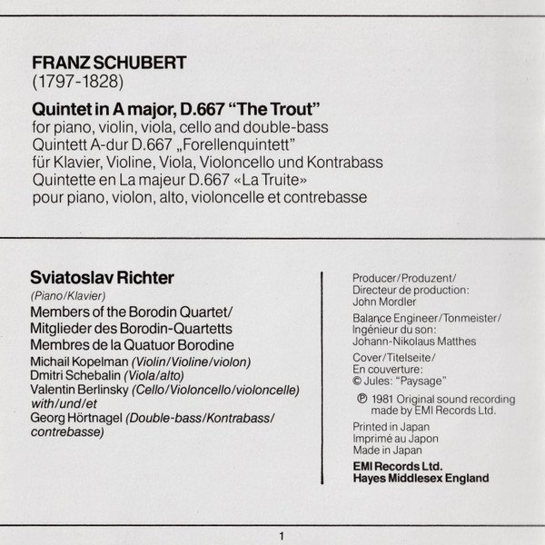 Sviatoslav Richter - Schubert Quintet In A Major "The Trout"