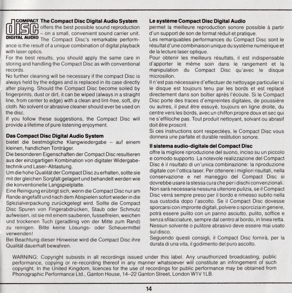 ℗ 1981 Original sound recording made by EMI Records Ltd. Printed in Japan Imprimé au Japon Booklet with liner notes in English, German, French & Italian Issued originally with a smooth edged jewelcase