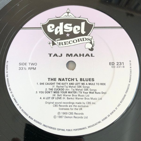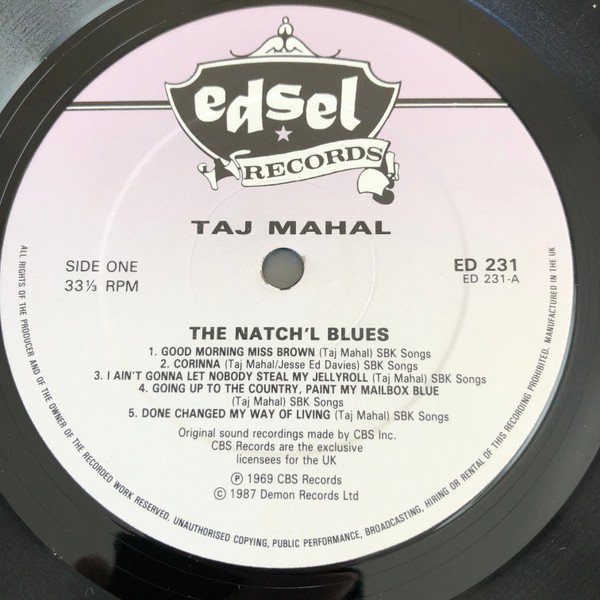 Glossy cover On labels: TAJ MAHAL above the center hole, THE NATCH'L BLUES below the center hole Manufactured in the UK