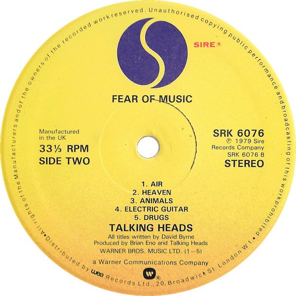Outer sleeve is embossed like a metallic floor. Comes with a printed inner sleeve which has an image on one side and lyrics and credits on the other.℗ 1979 Sire Records Company © 1979 A Sire Recording Printed and made in England by Garrod and Lofthouse Ltd.Track A1 published by Warner Bros. Music Ltd./E.G. Music Ltd. All other tracks published by Warner Bros. Music Ltd.On Label: Manufactured in the UK
