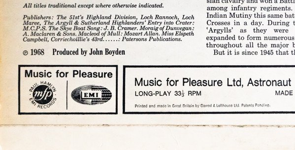 Variant: Has the line "Sold in U.K. Subject to resale price conditions. See price lists" on the labels.℗1968