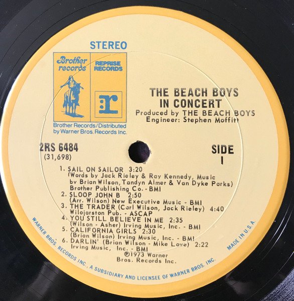 Recorded Live during their Winter 1972 Tour and 1973 Summer Tour. Side C on Record 2 misspells "Help Me, Rhonda" as "Help Me, Ronda". Track C5 ends with a question mark on the label, but not on the sleeve. Release is NOT Auto-Coupled - unlike many similar versions the sides are not organized for use with an auto-changing player. Record 1: Sides 1 and 2 Record 2: Sides 3 and 4