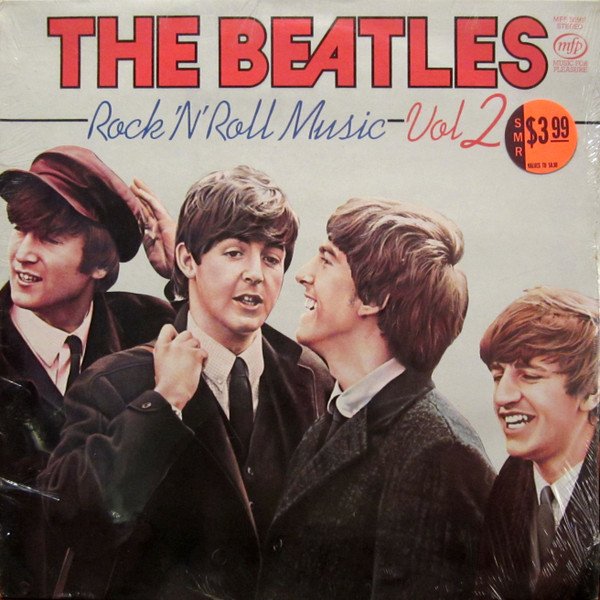 Budget-priced issue of the tracks found on disc 2 of the 2-disc set originally issued in 1976, with completely new artwork. One of the first Beatles-related releases to be re-issued for EMI's budget line. The mixes used on this version is the same as on the US release, using George Martin's alterations. Here is Vol 1: [r1426013] On labels: Music For Pleasure Limited Made in England ℗ Original sound recording made by EMI Records Ltd. This compilation ℗ 1976 EMI Records Ltd. On back cover: ℗ Original sound recording made by EMI Records Limited. Previously released as record two of the EMI double album "Rock 'N' Roll Music" (PCSP 719). This compilation ℗ 1976 All songs published by Northern Songs Limited, except A1 by ATV Music Limited and A4 by Knox Music Limited. A2, A4: ℗ 1964 A1, A3, A5, A6: ℗ 1965 B3, B4: ℗ 1966 A7, B1, B2, B6: ℗ 1968 B5: ℗ 1969 B7: ℗ 1970