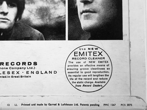 This version: Tracklisting on labels in a serif typeface. 'Printed and made by Garrod & Lofthouse Ltd, Patents pending' on the downmost part of the back cover. KT tax code may be stamped on either label.
