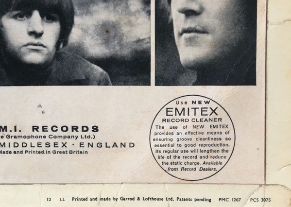 This version: Intermediate press side a the -4 recut and side b is the -1 so-called loud cut. It is unclear if these hybrids were ever meant for release. Labels appear to have serif typeface on A- and B-side labels. 'Printed and made by Garrod & Lofhouse Ltd.' in lower right corner of the rear sleeve. On label, side 1, Tax Code KT relief stamped (See image). Flipback cover.