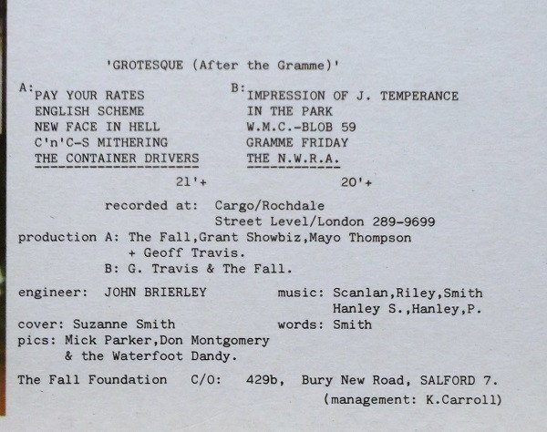 recorded at: Cargo/Rochdale Street Level/London 289-9699The Fall Foundation C/O: 429b, Bury New Road, SALFORD 7.