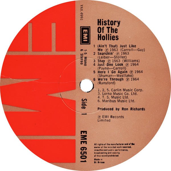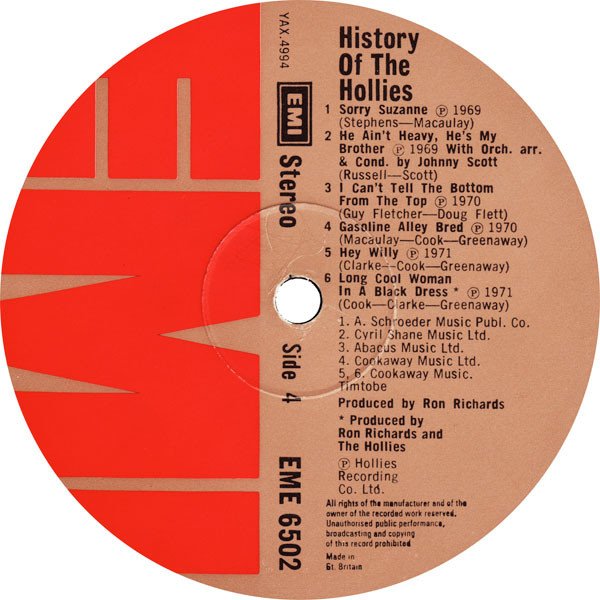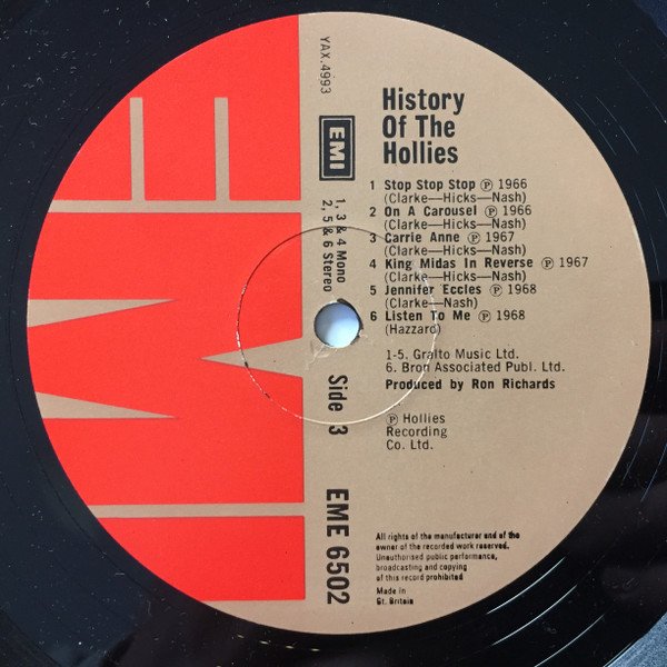 - Phonographic Copyright (p) – Hollies Recording Company Ltd.