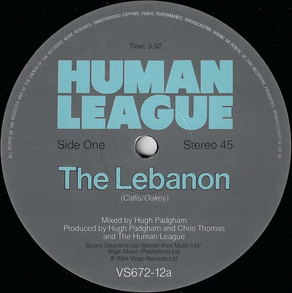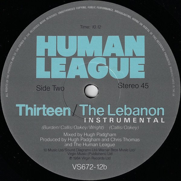 The version of "The Lebanon" on Side A is longer than the album version, but is not so noted as a remix or extended version on the release. 'Thirteen' is longer than 7" version but not listed as extended or full on this release. Duration for side B given as a total: 10'12. Track times for B1 and B2 taken from digital release
