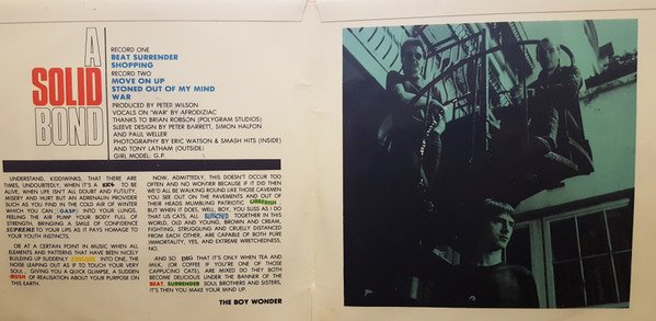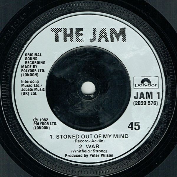 This version, pressed in France, has "The Jam" and the large letter "A" in a plain font on the first disc and a larger stylized font on the second disc. [r=763440] has the stylized font on both discs. [r=7454293] also has the stylized font on both discs but no rights society MCPS on side C. This double pack release comprises of the original Disc 1 (POSP 540) and limited edition Disc 2 (JAM 1) and comes packaged in a unique gatefold picture sleeve. Track times are not listed on release. Back cover: ℗ & © 1982 Polydor Ltd. London. Inside gatefold: Thanks to Brian Robson (Polygram Studios) Labels: Original sound recording made by Polydor Ltd.(London) Tracks A, B - Morrison Leahy Music Ltd. Track C - MCPS Tracks D1, D2 - Intersong Music Ltd./ Jobete Music (UK) Ltd. Runouts: - Everything is stamped except 'ARUN' and the last letter ('B' or 'H'), which are etched. - ? stands for an indecipherable symbol or letter.