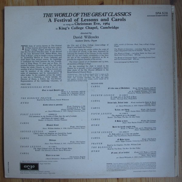 As sung on Christmas Eve, 1958.℗ 1965, © 1978, The Decca Record Company Limited, London (on rear sleeve) ℗ 1978 (on labels))