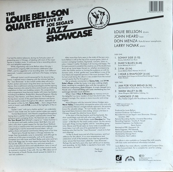 Recorded at Joe Segal's Jazz Showcase, Chicago in October 1987. "Where Jazz Lives In Chicago"