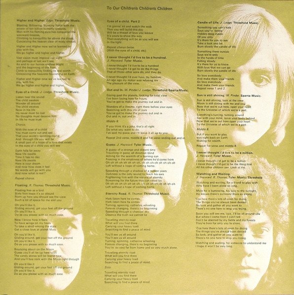 Gatefold sleeve. Made in England. Printed single Lyrics sheet with 5 head-shots.