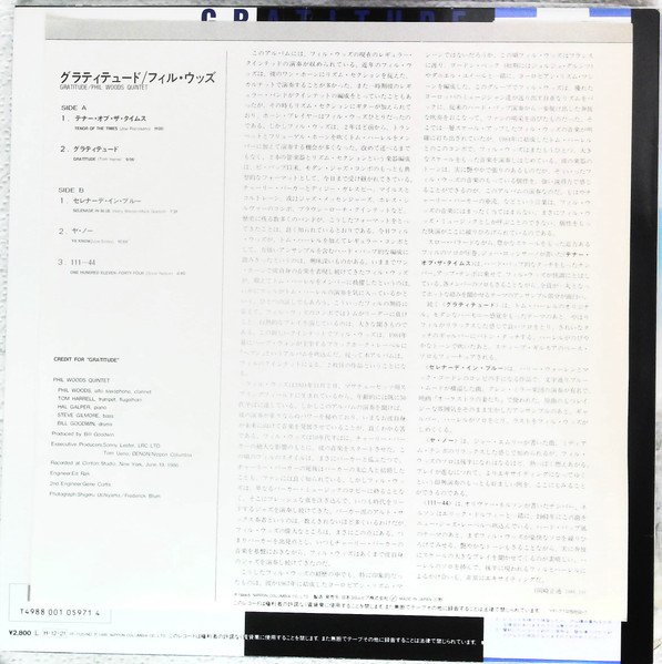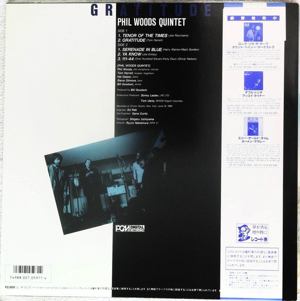 Recorded June 19, 1986. Made in Japan withh OBI & insert. No track durations on release. ℗ 1986