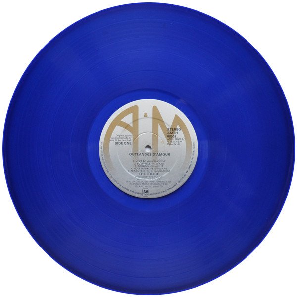 Same catalogue number as the commercial UK black version, only pressed on blue vinyl. Runout note: ⋀ are stamped not etched indicating the CBS pressing plant. Two different label styles exist (dipped and flat).