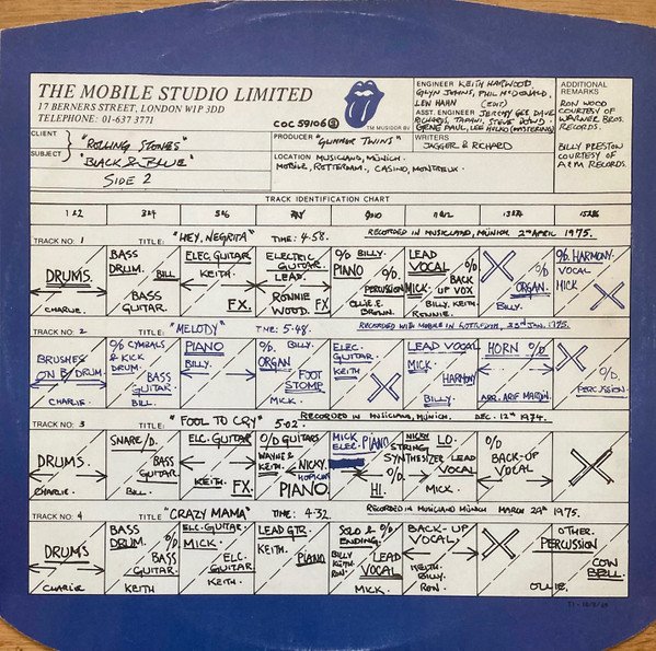 Original UK release in matt gatefold cover on yellow labels. Includes a shaped thick paper credits inner sleeve and a lyrics insert. Recorded at/with Musicland, Münich • Mobile, Rotterdam • Casino, Montreux ℗ & © 1976 ℗ & © 1976 Promotone B.V. Made in UK Printed in England. B1: Inspiration by Ron Wood B2: Inspiration by Billy Preston Published by Essex Music Int., except A3: State Music/Sheila Music. Runouts are etched, except for 'STERLING' and stand-alone 'B' in variants 1, 2 & 4 and 'A' in variants 6 & 7 are stamped.