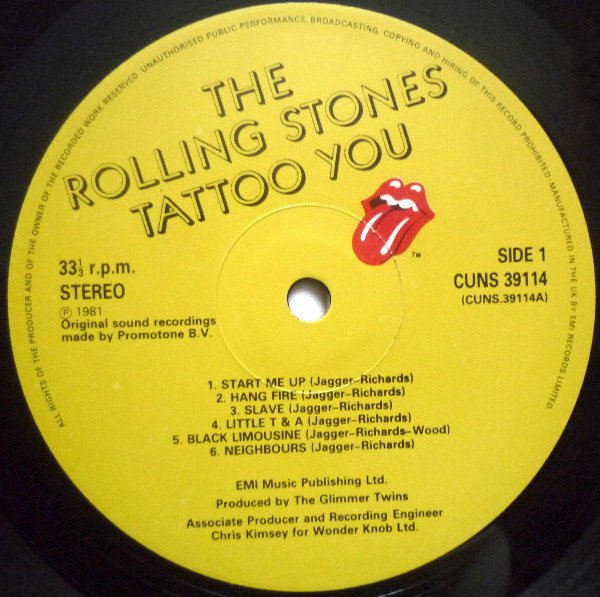 Associate Producer and Recording Engineer Chris Kimsey for Wonder Knob Ltd. Printed inner sleeve with rounded corners. The band's name is given as: Rolling Stones [on front] The Rolling Stones [on labels]