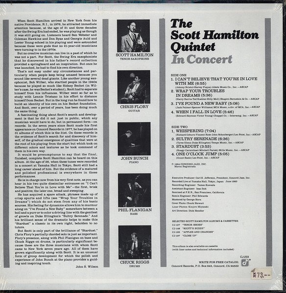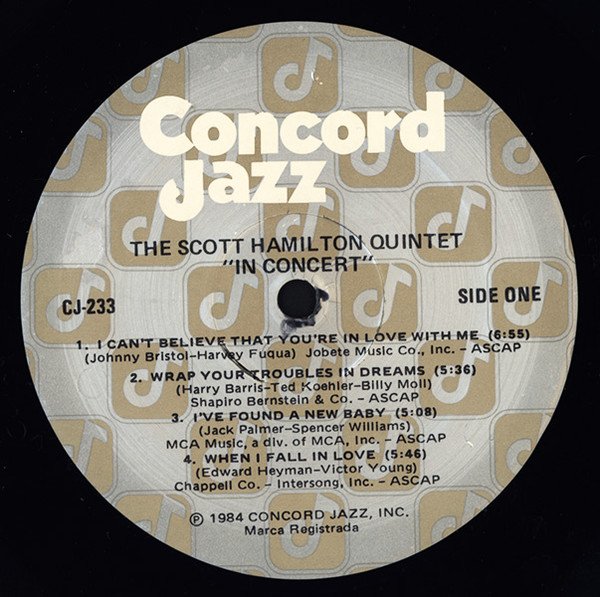 ℗ 1984 Concord Jazz, Inc. Recorded Live at Yamaha Hall, Tokyo, Japan June 1983 Remixed at P.E.R. A1: Jobete Music Co., Inc. - ASCAP A2: Shapiro Bernstein & Co. - ASCAP A3: MCA Music, a div. of MCA, Inc. - ASCAP A4: Intersong, Inc. - ASCAP B1: Leo Feist, Inc. - ASCAP B2: Tempo Music, Inc. - ASCAP B3: Mills Music, Inc. - ASCAP B4: Leo Fesit, Inc. - ASCAP Track A1 is actually a 1926 song written by [a=Jimmy McHugh] and [A=Clarence Gaskill], not the Tammi Terrell Motown song by Johnny Bristol / Harvey Fuqua: "I Can't Believe You Love Me" the release credits. The credit errors (also the wrong publisher Jobete) were corrected in the 1990 CD release.