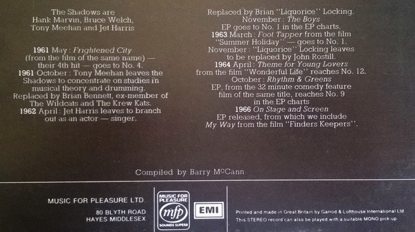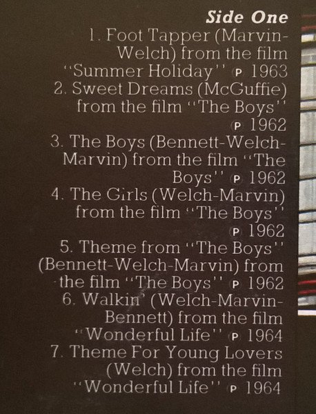 A1 from film "Summer Holiday" A2 to A5 from film "The Boys" A6, A7 from film "Wonderful Life" B1 from film "Frightened City" B2 from film "Finders Keepers" B3 to B7 from film "Rhythm And Greens"