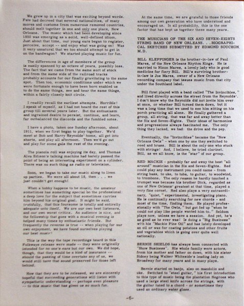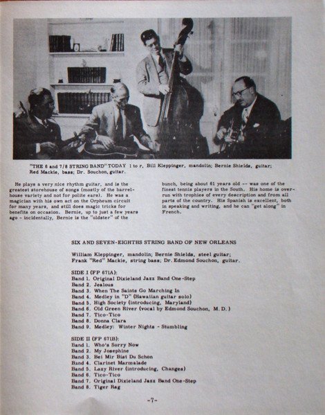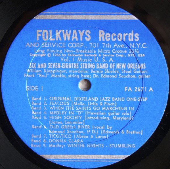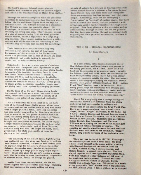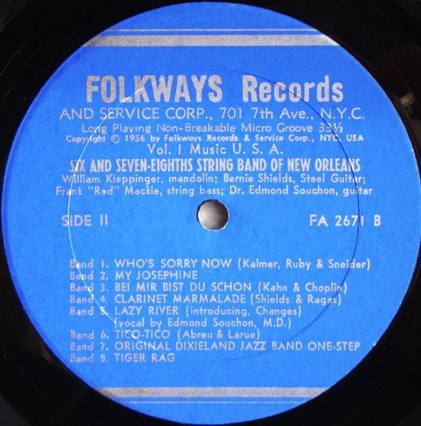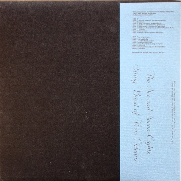 Blue cover. Cover reads: Six And Seven-Eight String Band Of New Orleans Label and back sleeve read: Six And Seven-Eights String Band Of New Orleans Includes 8 page booklet.