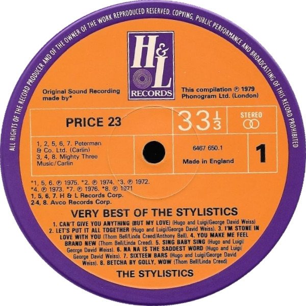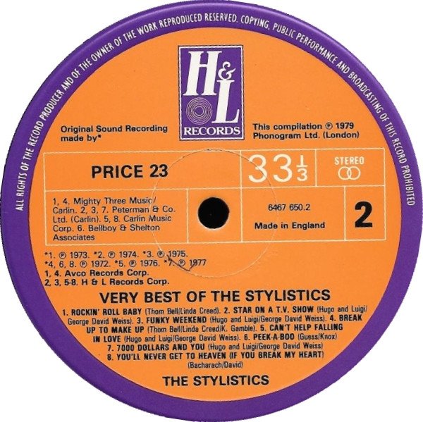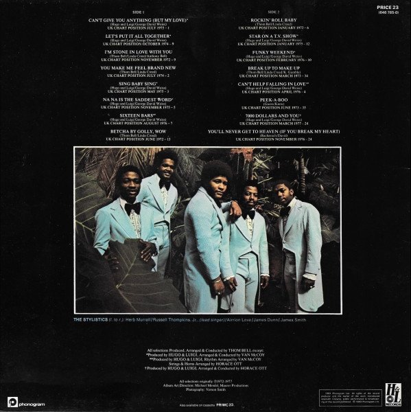 Same front cover artwork as "The Best of The Stylistics", Reissue of the compilation [r=3146985]'. © 1983 Phonogram Ltd. All rights of the record producer and the owner of the work reproduced reserved. Copyright, public performance & broadcasting of this record prohibited. ℗ 1983 Phonogram Ltd.