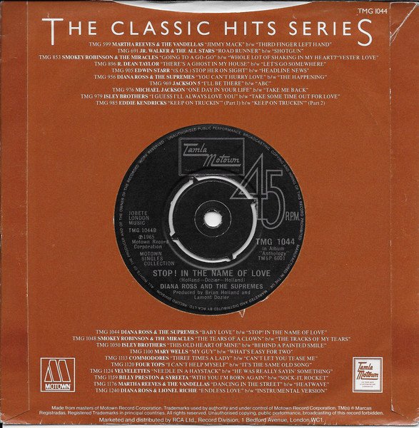 Motown Singles Collection in Motown Gold sleeve. Label variation ‘marketed and distributed by RCA around label edge