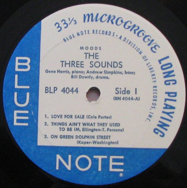 Recorded on June 28, 1960. Blue Note Records • A Division of Liberty Records, Inc. Originally released in October of 1960. This version can be differentiated by the company information printed on the labels, which indicates it was likely released between 1966 and 1970. Group name on the front cover: The 3 Sounds Group name on the back cover and labels: The Three Sounds Catalog number on the front cover: 4044 Catalog number on the back cover: BLP-4044/84044 Catalog number on the labels: BLP 4044