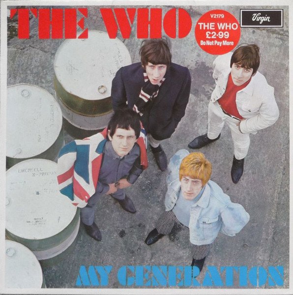 This is the original 1980 UK Virgin mono reissue release with Lois Music publishing credit for A2. Front laminated [overlapping for 1cm on the matt cover back] cover. (later glossy non-laminated) No barcode on cover back. Black Virgin labels. The font for publishing info on labels is narrow; on all later releases a wider font is used. First catalogue number on cover, 2nd on labels. [l=CBS Pressing Plant, Aston Clinton] pressing, with 32/63mm pressing rings and mother stamps 'A' at 9 o'clock, appearing as 3 dots in a triangle "∴" or "Λ" symbol in runouts. Remainder of runouts are etched. A5 is miscredited to ([url=/artist/311588-Peter-Pavey]Pavey[/url], [url=/artist/254136-Val-Doonican]Doonican[/url]) on cover, but correct to (Townhend) on label. B2 appears as "Please Please Please" on cover, but as "Please, Please, Please" on label. ℗ 1965 [labels] ℗ 1965 Pancontinental Productions Ltd. [cover] Made In England. Virgin Ltd. London Publishing: • A1, A3 to B1, B3, B5, B6: Fabulous Music. • A2, B2: Lois Music. • B4: Jewel Music. Some copies issued with hype sticker on cover front reading: "V2179, THE WHO, £2·99, Do Not Pay More" There is a similar slightly later pressed CBS release: [r=32352645] with already changed publishing credit for A2 on label. There is a later re-release pressed by EMI: [r=10160356] in a non-laminated glossy cover.