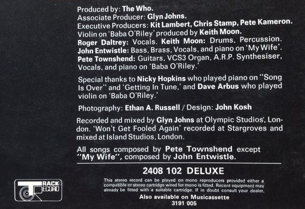 | B4 | Won't Get Fooled Again | 8:31 |