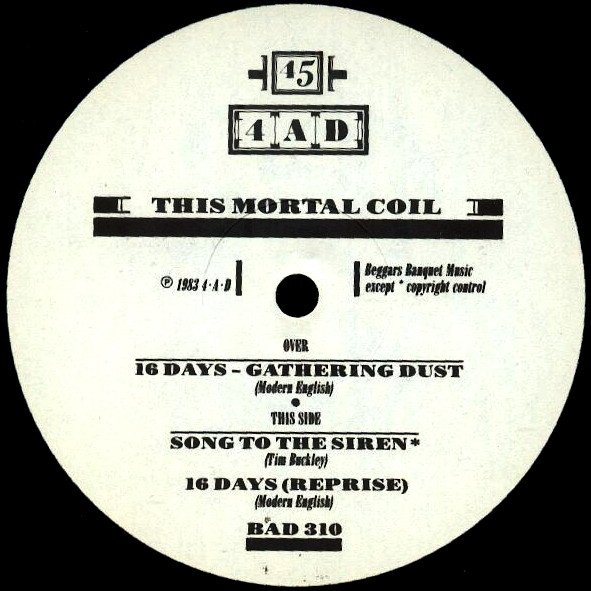 Contributions from: Michael Conroy, Gary McDowell ([a71873]). Elizabeth Frazer, Robin Guthrie ([a12373]). Gordon Sharp ([a97112]). Martyn Young ([a13531]). Recorded at Blackwing, London, 1983. For Tim Buckley ℗ 1983 4-A-D Beggars Banquet Music except "Song To The Siren" Copyright Control. Credits appear on label side B, picture A side label ('lights' design) without identifiers. Over = A / This Side = B